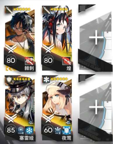 棘刺(3技能)、煌(2技能)、塞雷娅(1技能)、夜莺(2技能)