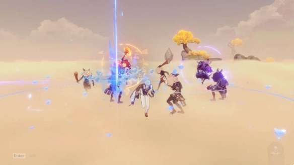标准效果:在当前场上角色的位置施放四次元素爆破,分别对附近的敌人造成水元素、火元素、水元素、冰元素伤害