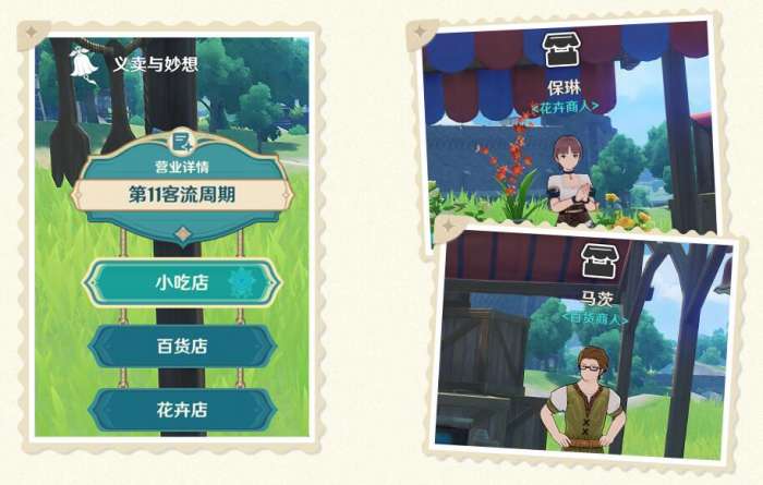营业收入达到指定额度后,将有更多店主加盟,旅行者需要同时指导三家店铺经营。点击页签或与店主对话,即可为各店铺调整经营策略。