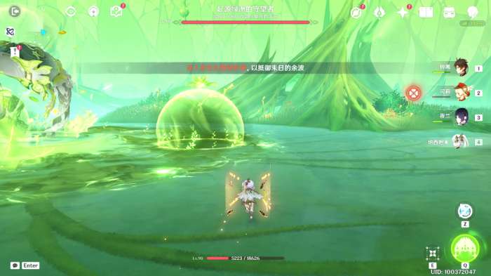(2)在BOSS蓄力期间,场地上会随机出现3个护罩,我们立刻进入护罩即可