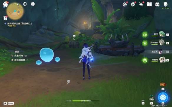 6,在中途可以找到一个幻灵,我们击败旁边的丘丘人,之后跟随幻灵前进
