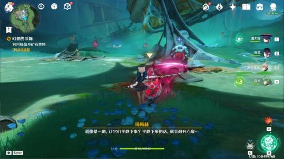 10.利用棱晶与矿石共鸣:这里的周围棱晶矿石较多,需要全部共鸣。