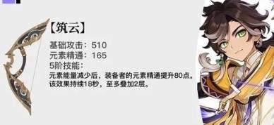 2、5阶技能:元素能量减少后,将会提升80点的元素精通,并且持续时间为18秒,上限是叠加2层。