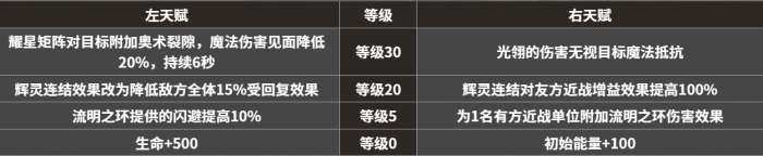 在天赋系统的构建方面,0级时玩家可选择增加500点生命值或提升100点初始能量,以适应不同战术需求。5级时的两个分支分别为强化流明之环的闪避概率(提升10%)或扩大其范围伤害效果。到达20级后,辉灵连结可转化为削弱敌方治疗能力,或转而提升队友近战类增益效果100%。当角色成长至30级,天赋将进一步优化:一是让耀星矩阵附加奥术缝隙状态,降低目标20%的魔法伤害减免;二是使光翎技能完全无视敌方的地热能魔法抗性,确保技能命中后可造成全额伤害。