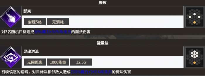 永昼信徒的基础攻击技能名为光临,能够同时锁定两名敌方单位发动魔法打击。每次攻击都会造成等同于自身50%攻击力和50%魔力值的双重伤害,兼具物理与魔法输出特性。此外,该技能拥有高达5格的施法距离,在远程作战中具备良好的站位灵活性,整体普攻输出能力相当可观。