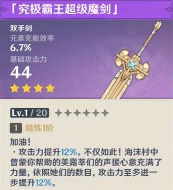 攻击力提升(12%/15%/18%/21%/24%)。 不仅如此!海沫村中曾蒙你帮助的美露莘们的声援心意充满了力量,依照她们的数目,攻击力至多进一步提升(12%/15%/18%/21%/24%)。