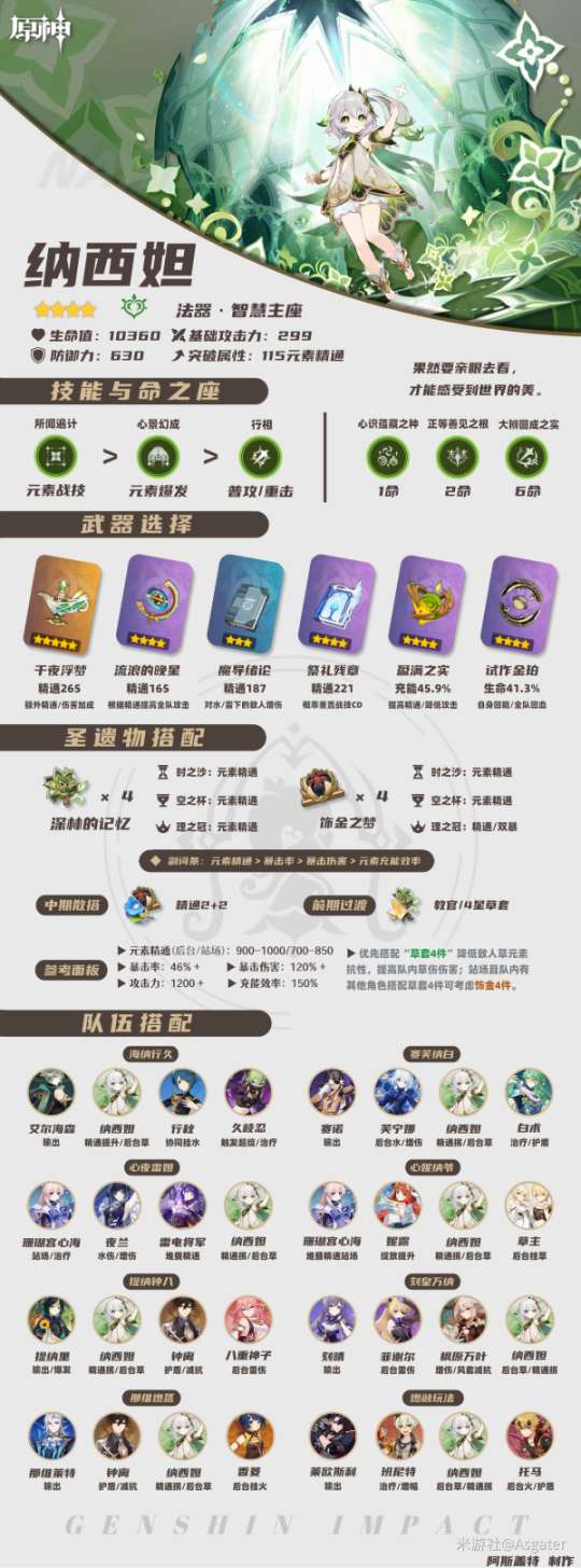 这里是阿斯盖特,本期是「摩诃善法大吉祥智慧主」、须弥的神明“小吉祥草王”——「纳西妲」的角色攻略!本期将详细讲解纳西妲的技能机制、圣遗物与武器选择、相关队伍搭配!
