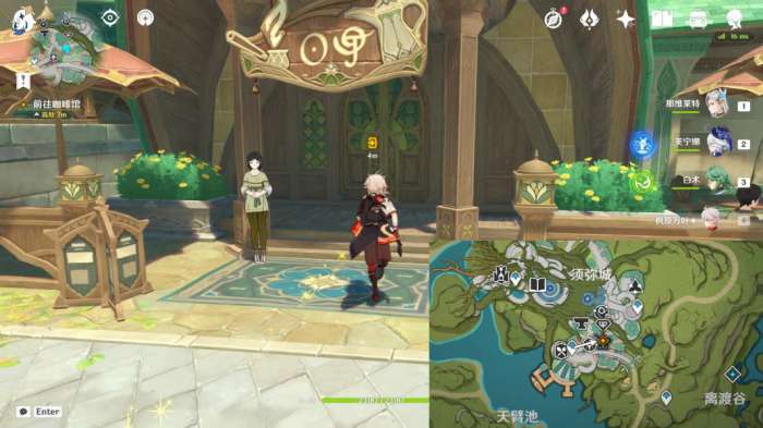 4、然后传送须弥城西南方向锚点,前往咖啡馆中;