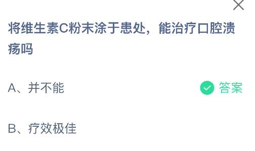 以上就是将维生素C粉末涂于患处,能治疗口腔溃疡吗,支付宝蚂蚁庄园2025年10月16日答案最新,更多精彩内容,请点击关注pk游戏网更新!