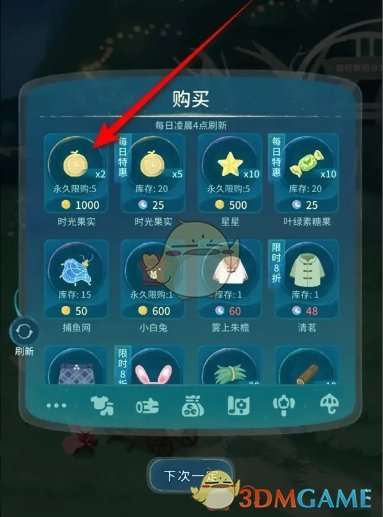 4、最后花费1000金币即可购买时光果实,注意在商店内该道具永久限购5个;