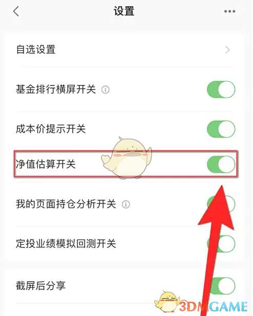 4、《净值估算开关》后面的圆点变为绿色即表示开启天天基金《净值估算开关》成功。