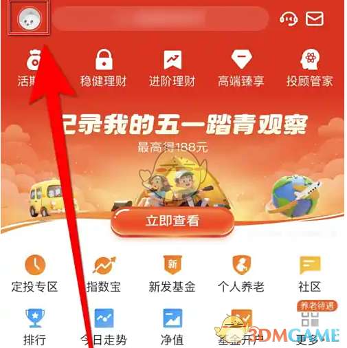 1、打开《天天基金》App,天天基金主界面点击右上角的《人像》图标打开账户管理界面。