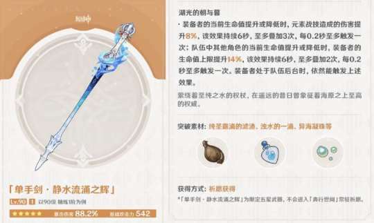 在本期的武器池中,静水的搭配武器是碧落之珑。与试作金珀相比,这把武器的使用体验并没有很大的差距,对于白术玩家来说,使用试作金珀就足够了,并没有必要去抽取碧落之珑。