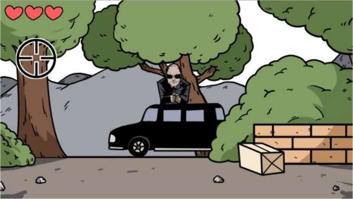 玩法介绍:敌人会在场景中不断出现,鼠标控制射击敌人,敌人每4秒射击一次并造成1点伤害,需要在4秒内将其击杀。此外,场景中还有一些“无辜”的路人,射中路人会损失一点生命。打败场景中的所有敌人后进入下一场景。男主的手枪子弹无限,不用担心打空弹夹的问题