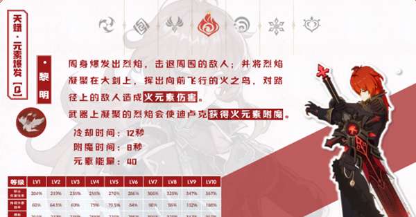 1、迪卢克目前版本主流玩法就是搭配闲云来打下落攻击并且触发元素反应,所以优先点满普通攻击。