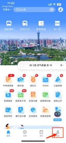1、打开掌上石家庄app,点击界面右下角“我的”选项;