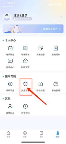 2、点击使用帮助下“安全设置”;