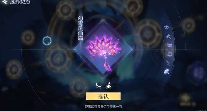 3、点击拟态选择,就可以选择武魂进行拟态,拟态后24小时后才可以重新进行拟态,切换拟态会卸下所有魂印,并重新抽取所有魂环特性,其他养成属性将自动继承至新武魂的对应魂环上。