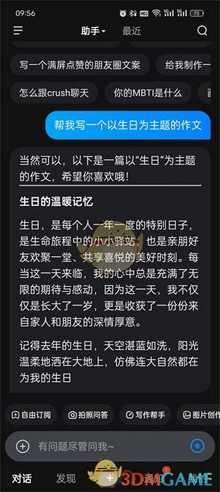 软件提交 专题合集 热门手游用户可通过打开文心一言APP,在对话输入框输入写作主题(如“写一篇科技论文”“创作故事大纲”),或直接选择首页「写作」功能入口,从预设模板中挑选类型,输入关键词、风格要求(如正式、幽默)及字数限制,点击「生成」即可获取AI创作的初稿,支持进一步修改优化。