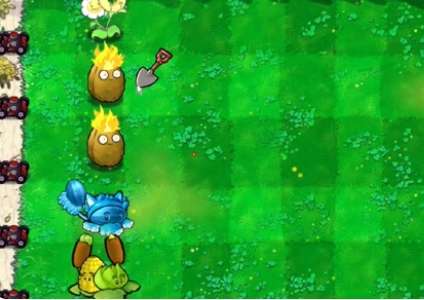 2、先在左边第二列种植一列盲盒,使用铲子铲除防护类植物。
