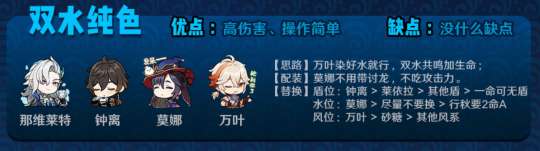 ◆ 而未来可变性比较大的一点在于:水神的加入。到时就是双水位!所以大家按上图中的;双水纯色配队调整即可;伤害只会更上一层