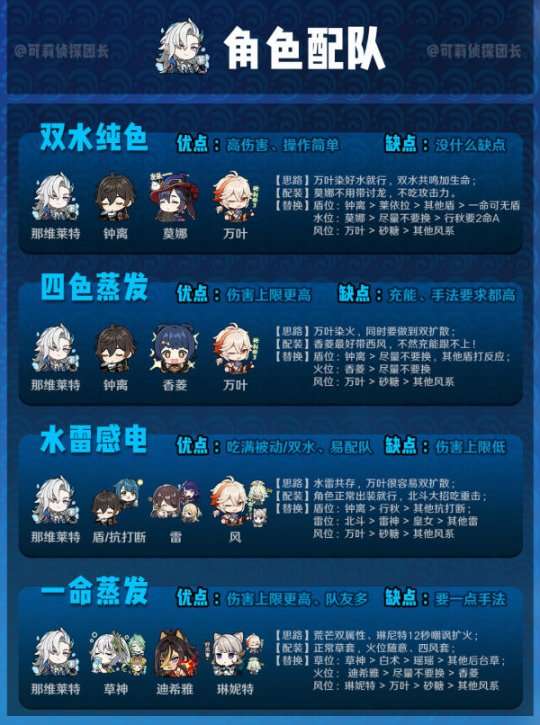 ◆ 目前来讲,配队方面已经很明确:双水纯色、蒸发水火、四色感电