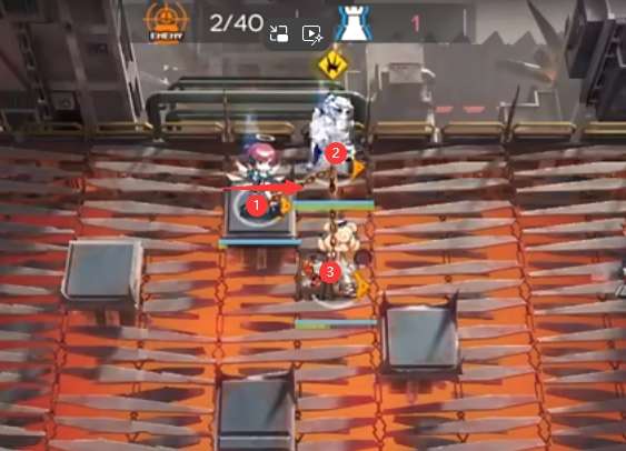 继续部署:塞雷娅(奶盾)→ 煌(向上)→ 蜜莓(向左)