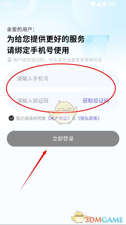 2、输入手机号并获取验证码,按照提示完成验证即可登录