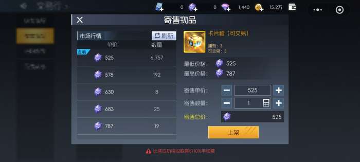 设置售价时必须遵守系统规定的最低价与最高价区间,避免恶意定价。每笔成功交易,系统都会扣除一定比例的服务费。同时,每个角色拥有的上架名额有限,需合理规划使用。已上架的物品可在“我的货架”中统一管理,查看销售状态。所有商品均有上架时效,超过时间未售出将自动下架,不再对外展示,建议定期检查并及时处理。