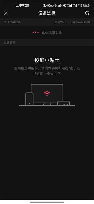 3、然后等待手机搜索到电视的信号,找到连接的信号点击选择就可以连接投屏了,注意电视需要和手机在同一wifi下。
