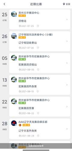 软件提交 专题合集 热门手游打开咕咕信鸽APP,在首页点击近期比赛按钮,进入自己参与过的比赛页面,可通过输入参赛名或会员编号,点击搜索按钮查询成绩;也可在APP中利用便捷搜索功能,根据足环号、参赛名、会员编号直接查询成绩。