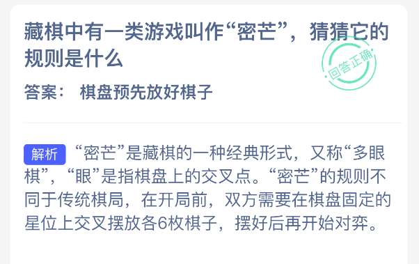 以上就是藏棋中有一类游戏叫作“密芒”,猜猜它的规则是什么?支付宝蚂蚁新村最新答案2025年11月28日,更多精彩内容,请点击关注pk游戏网更新!