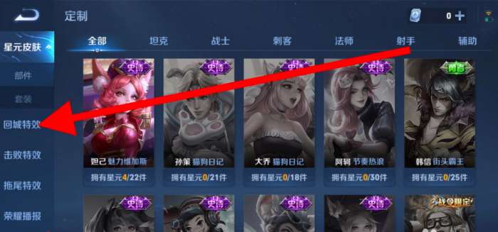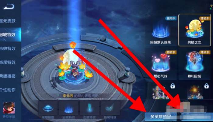 2、然后点击左侧的【回城特效】按钮