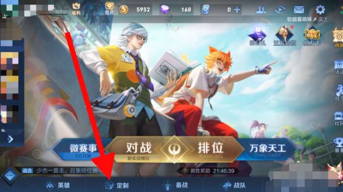 1、进入游戏后点击下方的【定制】按钮