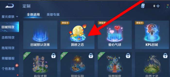 3、然后选择自己喜欢并且拥有的回城特效,点击进入