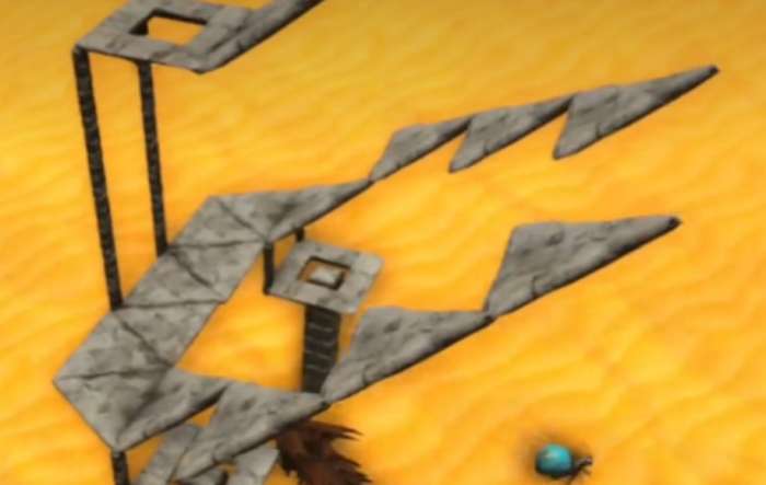 接下来在每根柱子的顶部放上一个天窗,然后再在这个天窗的上面各放置一个门框和一个三角屋顶,记得一定要朝向正面,并且略微向上倾斜,两边各放一个,保持对称。在这一步很多小伙伴会觉得爬上爬下的太麻烦了,如果说你也有这样的烦恼,那么小编建议你先骑一个手中现有的飞行宠物。