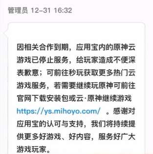 由于合作到期,应用宝上的原神云游戏已经停止提供服务。