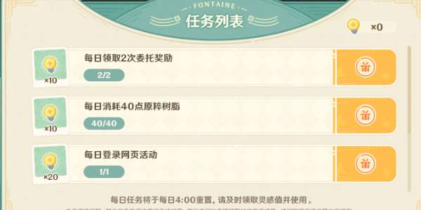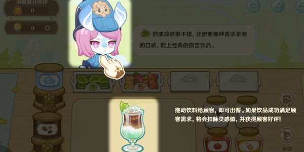 活动期间,旅行者可以通过每日登录原神、领取每日委托奖励、消耗原粹树脂等任务获取灵感值。灵感值可以用于尝试根据顾客的需求,制作不同配方的饮品。累计获取顾客的好评,可领取原石等奖励。