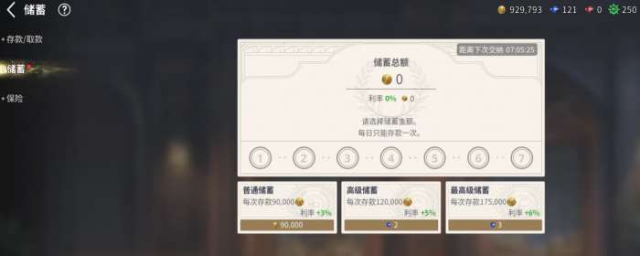 第二项为周期储蓄服务。支持设定为期7天的固定储蓄周期,期间每日限存一次,到期后可全额支取本金,并额外获得约定利息;第三项为定额保险服务——当玩家因战斗失利、沉船、劫掠等不可抗力造成实际资产损失时,可依据所购保险额度申领对应赔偿金,进一步加固财务防线。