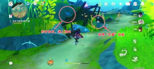 ◆跟随任务指引前往水下指定位置,刀就在沉船背后的石洞内,利用“护盾”技能炸开岩石进入拾取。