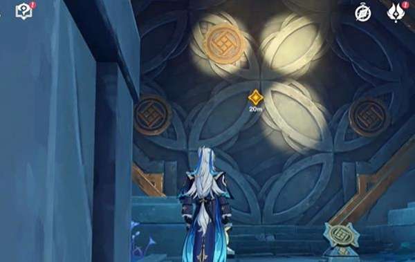 2、最后的解密机关只需要将墙壁上的金色区域转动到光照处就可以了,玩家随便转几下就可以解开,通关这个秘境。