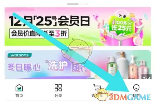 1、在屈臣氏app选择【我的】点击进入下一步;