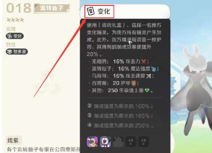 攻击力基础加成16%,满4层变换属性后增幅可达250%