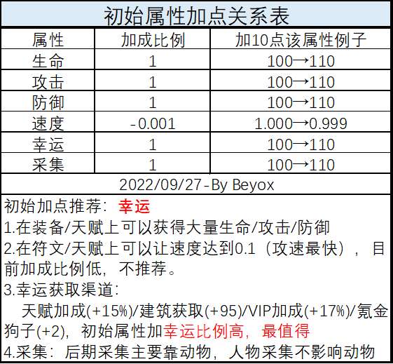 天赋加成(+15%)/建筑获取(+95)/VIP加成(+17%)/氪金狗子(+2),初始属性加幸运比例高,最值得