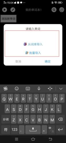 2、在弹出界面中,我们可以从APP提供的词库中导入单词,或是通过批量导入的方式将需要背的单词自行导入;