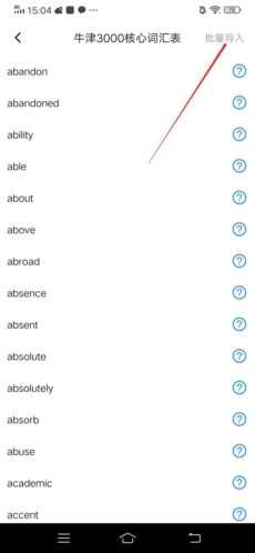 4、进入之后,再点击右上方“批量导入”,我们可以选择将该词库中先导入一部分的单词或是全部导入。