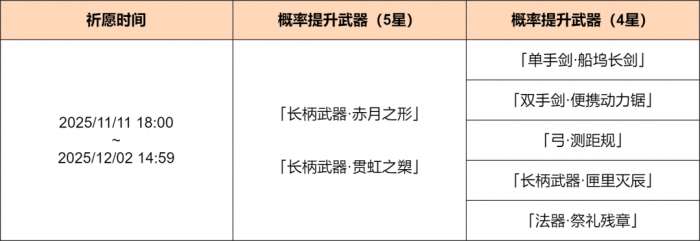「长柄武器·赤月之形」「长柄武器·贯虹之槊」概率UP!