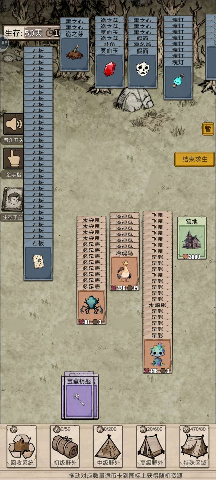 软件提交 专题合集 热门手游在《我在异界抓诡异》中,通关的核心在于规划50天生存周期内的资源采集、诡异养成与昼夜战斗节奏,并从容应对每10天一次的BOSS战。前期优先合成生存卡与矿坑,中后期集中资源换取高级箱子的低费卡来应对高血量BOSS,同时合理控制小怪数量与战斗节奏,是稳定推进的关键。