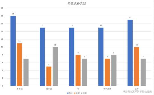 单手剑是所有武器类型中五星占比最高的,而双手剑则是四星占比最高的武器之一。由此可见,在水系中,没有双手剑角色的出现可能与其“高贵”的性质有关。相比之下,火系拥有众多长柄武器和双手剑的角色,而冰系则相对平衡。