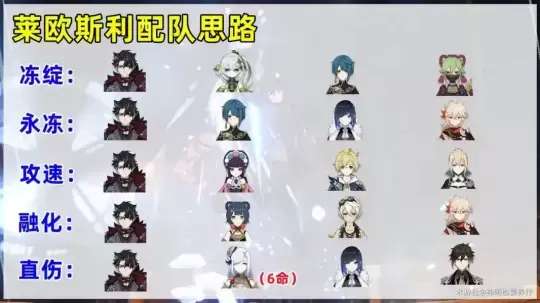 2.永冻,使用莱欧斯利、行秋、夜兰和万叶,如果需要更好的生存能力,可以将夜兰、行秋、心海或者钟离互换;